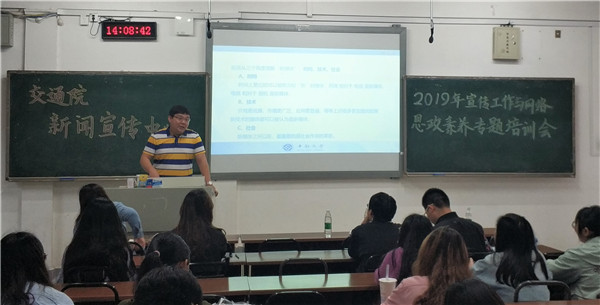 5月15日下午两点,交通院2019年宣传工作与网络思政素养专题培训会于新校区A座310教室顺利举行。此次培训会邀请到了新华社湖南分社记者谢樱老师和51吃瓜网 宣传部新媒体负责人王轩老师做培训讲座。交通院副党委书记宋晓...