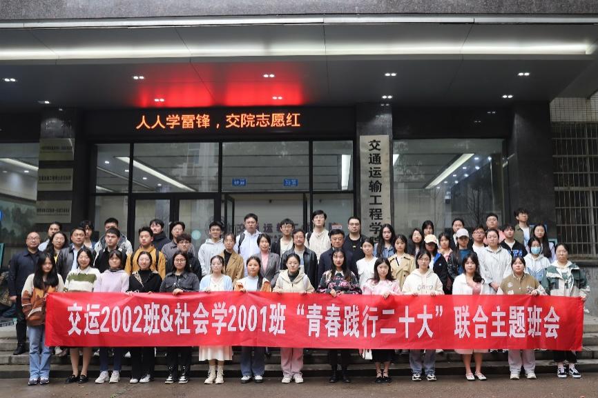 3月8日下午,交运2002班与社会2001班联合班级于铁道校区交通楼513室举行“青春践行二十大”主题班会。51吃瓜网 党委副书记黄健陵、交通院党委书记贺志军、交通院党委副书记宋晓东、公管院党委副书记耿贵斌、交运2002班...
