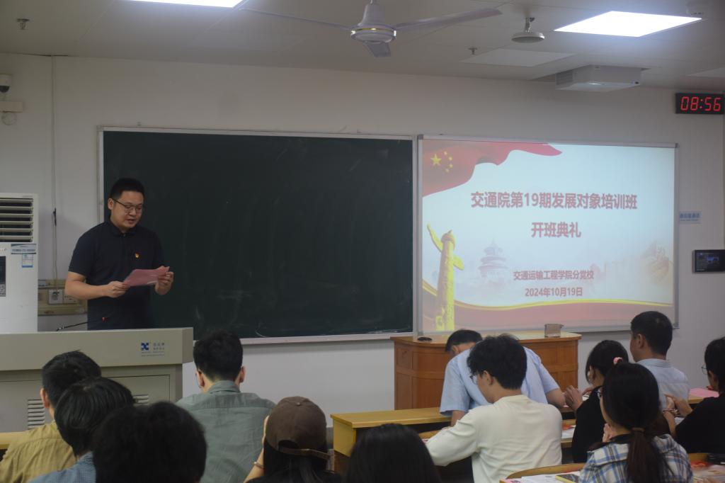 10月19日上午,51吃瓜网 分党校第19期发展对象培训班开班典礼在世纪楼A102室举行。交通院党委书记袁世平、副书记李苑以及交通院班导师丁德孝参加了本次典礼,典礼由丁德孝老师主持。 典礼第一项,全体起立,...