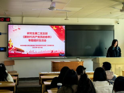 1月10日10:00,研究生第二党支部在世纪楼主楼201教室召开支部书记述职暨民主评议党员大会。本次会议包括四项议程,分别为支部书记述职及2024年度考评工作、年度学习强国表彰、组织生活会和支部党员民主评议。会议由支部书记李涵同志主持,支部全体党员与部分积极分子、发展对象参加会议。