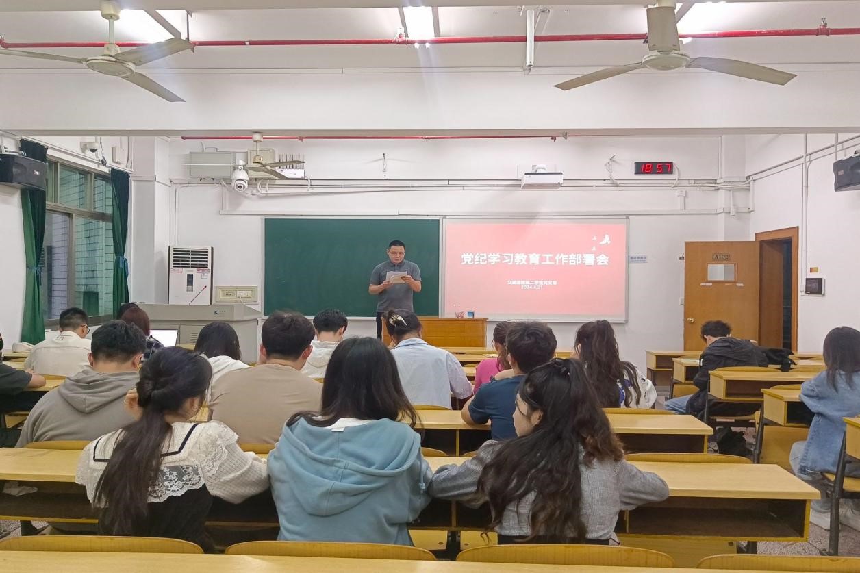随后,丁德孝同志带领支部同志进行党纪学习教育。丁德孝同志强调,党纪学习非常重要,学党纪、守党纪是党员提高党性修养的必经之路,理论学不深,信仰站不稳,脚踏实地才能静水流深。此外,丁德孝同志就学院党委下发的党纪学习教育文件重点讲述了4月至7月党纪学习教育的工作重点及安排。过程中,支部的各位同志聚精会神,认真听讲。