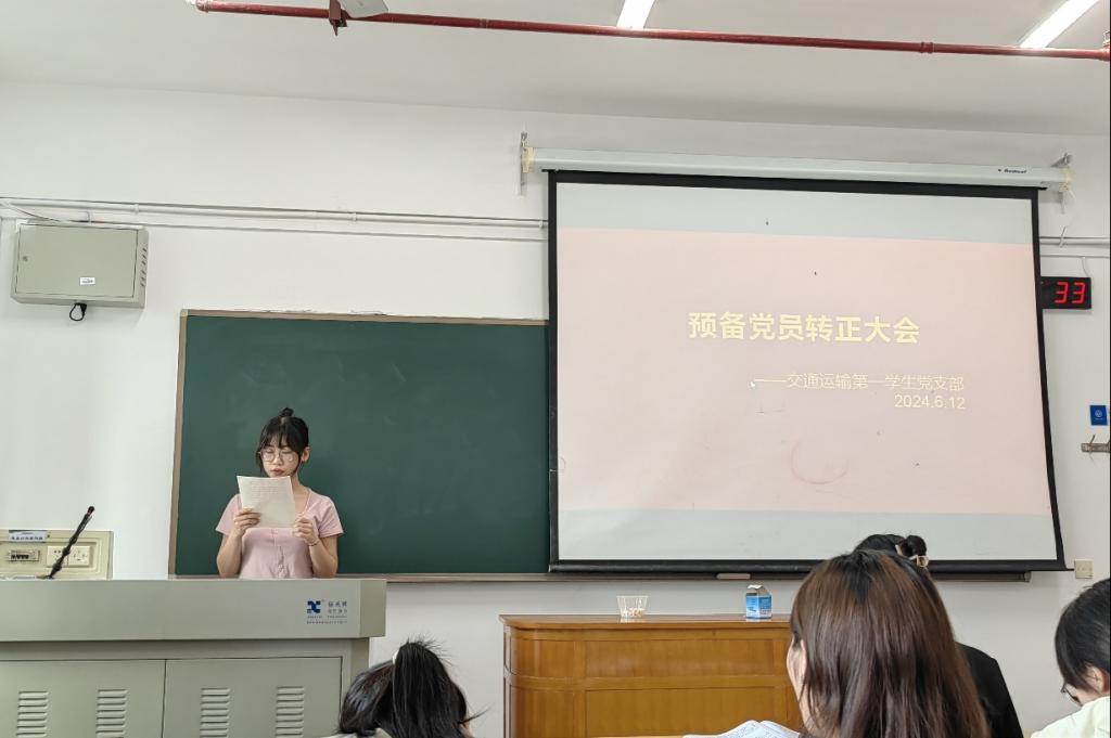 6月12日下午15:00,交通运输第一学生党支部在世纪楼306室举行预备党员转正大会暨预备党员接收大会,会议由支部书记石晓琪同志主持,支部全体党员参加会议。