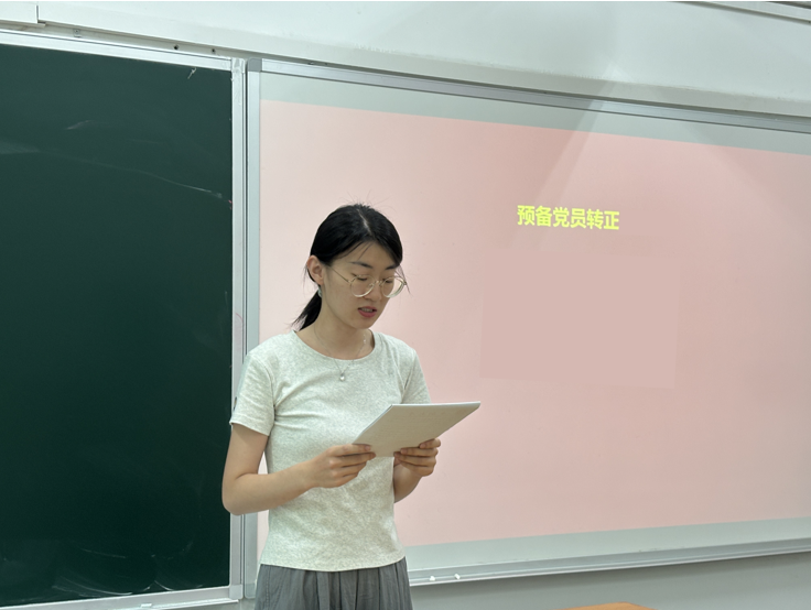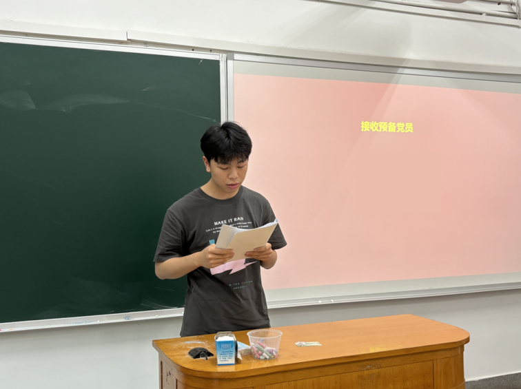 6月12日下午16:00,研究生第二党支部在世纪楼A102教室举行支部党员大会,本次会议由支部书记章孟丹同志主持。会议议程包括接收预备党员、预备党员转正及集体政治生日会三项。