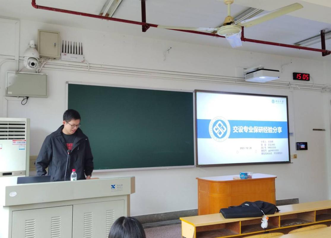 的“本-博”拔尖计划,分享了自身参与学科竞赛的经验;保研至上海交通大学的关剑祺同志重点介绍了保研前期的准备工作,涵盖材料准备、院校选择等,分享了面试技巧。他告诉同学们,保研是一场持久战,不到最后关头千万不要放弃。