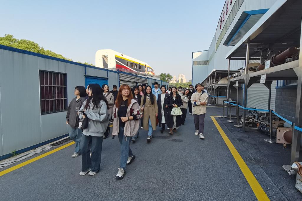 接着,同志们来到了高速列车研究中心。在实车碰撞实验室中,志愿者向大家重点讲解了轨道车辆实车碰撞试验展示平台,该平台的建设填补了国内在“列车整车碰撞试验系统”方面的空白,对于我国轨道交通行业的发展具有重要意义。随后,大家经由碰撞试件室外展示现场转至列车空气动力学动模型实验室,一系列高速列车的吸能结构、车钩等零部件陈列在大家眼前。这些部件见证了我国高铁技术的创新历程,让大家对高速铁路的建设有了更深入的了解。在列车空气动力学动模型实验室中,志愿者生动讲解了我国不同型号轨道列车在速度和外观上的差异,展现出我国在轨道交通领域的不断进步和发展。