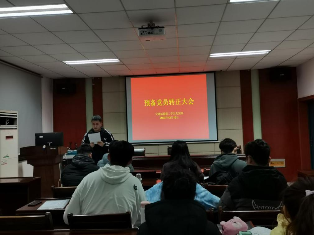 12月16日19:00,交通运输第二学生党支部在交通楼513举行了预备党员转正大会。本次会议由支部书记丁德孝同志主持,会议主要讨论了李若愚、王明灿、郭翼成、周茂珍四位预备党员同志转正的相关事宜。