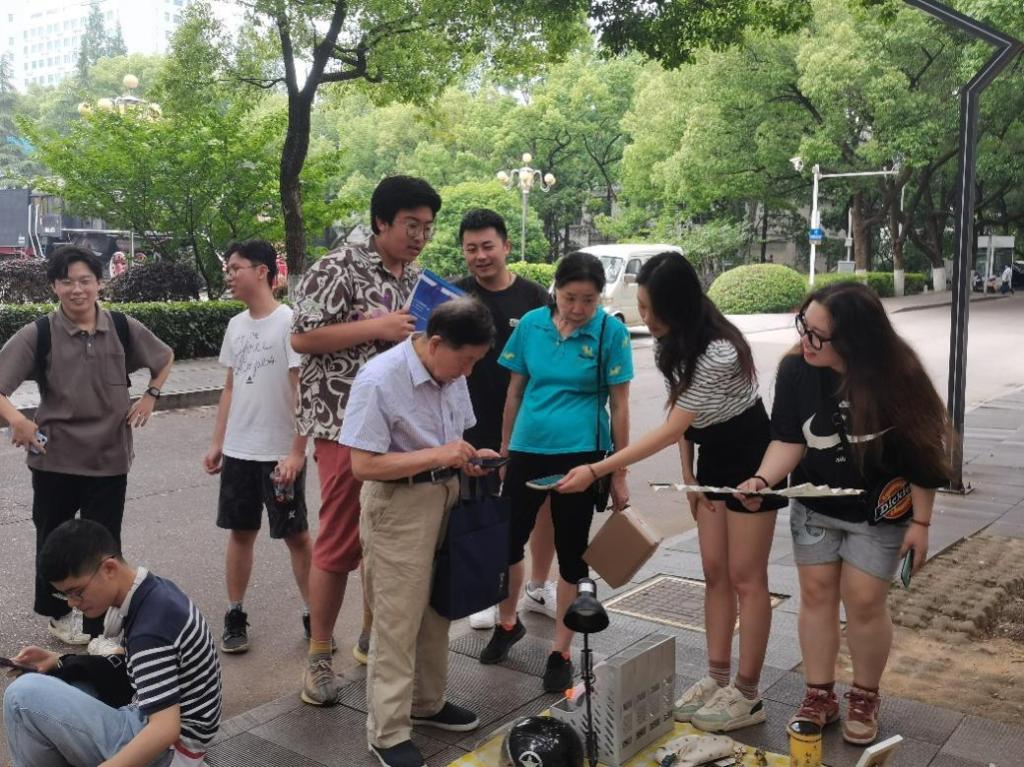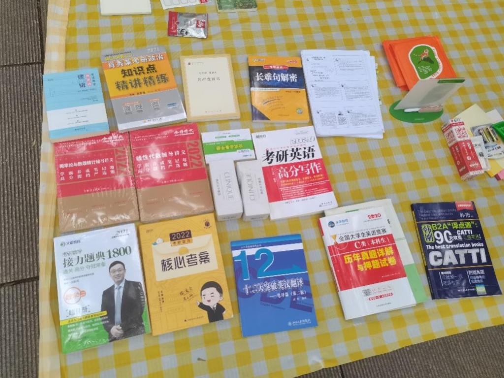 同志们将承载着爱心的物品整齐地陈列在野餐布上,有考研教辅、收纳箱、键盘鼠标、台灯以及校园周边,吸引了许多来往路人的驻足观看与挑选。“妈妈,我想要这个粉色的收纳盒!”一个坐在电动车后座的小女孩和她的妈妈讲道,她们停下电动车,来到义卖摊位前挑选,同志们根据她们的需求,热情地向她们推荐实用的物品,最后她们满载而归,也捐献出了今天的第一笔善款。不一会儿,一位大爷来到摊位前,询问台灯的价格,同志们积极上前,向大爷分析两款台灯的差异,以优质的服务与价格收获了第二笔善款。此后,在众多老师、居民和同学的支持与同志们的努力下,陆陆续续又售卖出很多爱心物品。