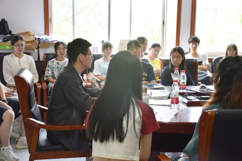 座谈会最后是自由提问环节,同学们就考研准备、推免面试技巧等方面提出疑惑。徐光明老师一一进行解答,并指导同学们前期要完成院校选择及文书材料准备,合理制订整体复习计划,平衡好竞赛与专业课的时间分配,根据不同院校的面试要求提前熟悉问题和流程等。随着一个个问题被解决,座谈会渐入尾声,同学们的认知也愈发深刻。