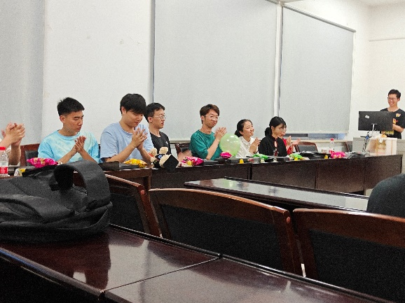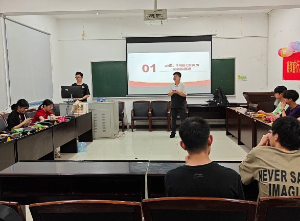 欢送会分为四个部分进行。会议伊始,20级党员代表肖佳琪同志和21级党员代表瞿金阳同志对毕业生党员们表达了感激之情与美好祝愿。随后,党支部书记郑繁简同志进行发言,他充分肯定了毕业生党员同志在支部建设工作中的贡献,感谢他们在过去一年中的付出与奉献,希望他们无论去向何方,都铭记自己入党的初心,保持党员的纯洁性,秉持“知行合一,经世致用”的校训,在新的岗位与学校也时刻发挥党员的先锋模范作用。
