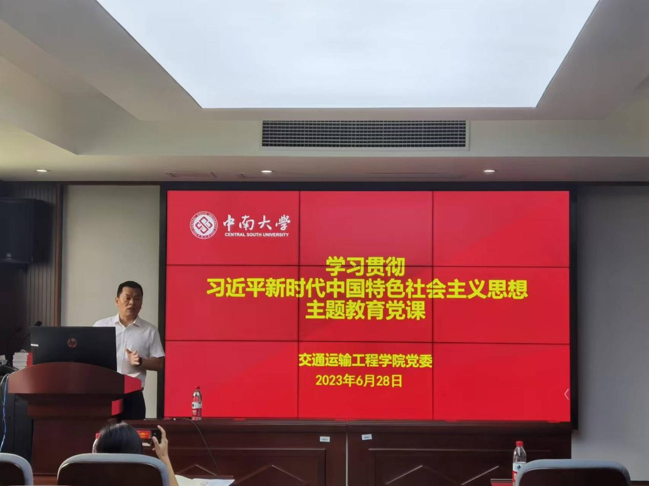 为深入开展学习贯彻习近平新时代中国特色社会主义思想主题教育,积极贯彻落实党的二十大精神,6月28日下午3点,交通运输与物流工程学生党支部、 博士第六党支部在交通楼425联合开展“学习贯彻习近平新时代中国特色社会主义思想”主题教育专题党课,党课由陈维亚副院长主讲,支部书记与全体党员同志参加。