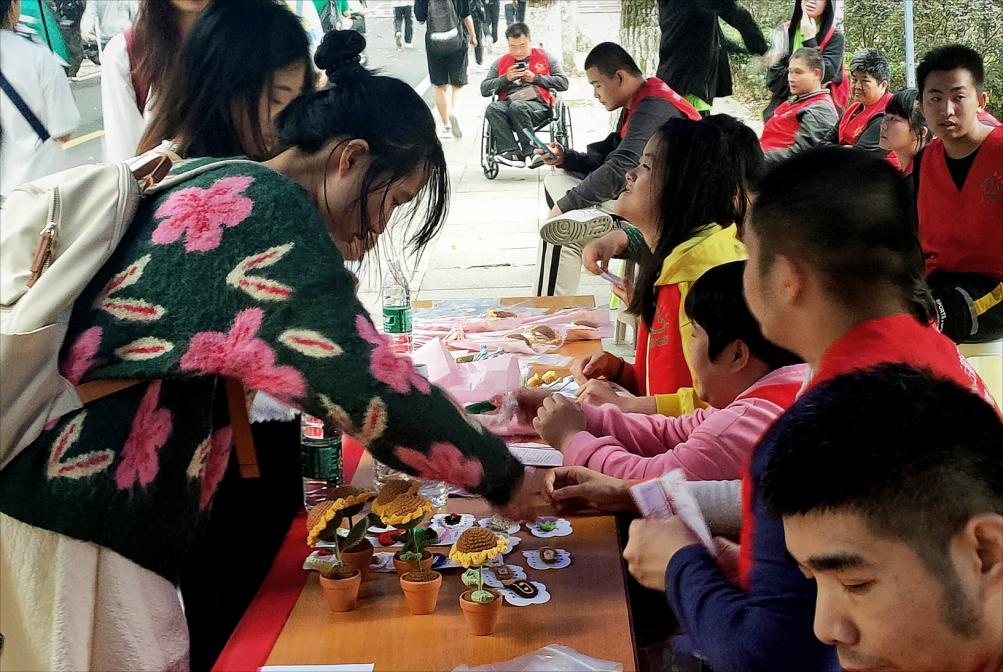 活动最后,支部的同志们与怡智家园的老师、学员们共同开展了爱心义卖。怡智家园的学员们带来了亲手制作的精美手工艺品,与同志们一起大方、热情地向校园里来往的老师、同学们展示与推荐。义卖现场气氛热烈,吸引了许多师生前来献出自己的一份爱心。本次义卖所筹集的善款将全部用于支持怡智家园的运作,为残障人士提供更多资源和关爱。