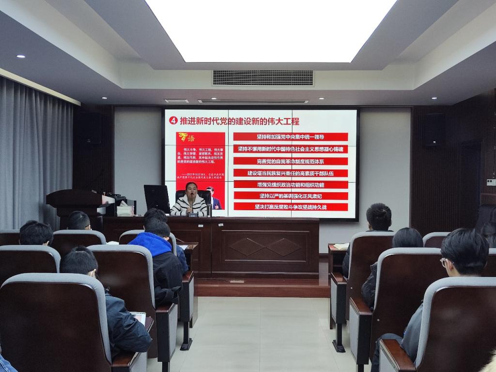 随后韩老师重点讲述了党史发展中的关键历史转折及其基本线索。在马克思主义中国化的过程中,毛泽东思想的创立实现了第一次历史性飞跃。在新民主主义革命时期,革命的形势和任务凸显了马克思主义的阶级观点。自社会主义革命和建设时期以来,党始终在探索符合中国实际的道路,并取得重要成果。在党的十一届三中全会时形成社会主义现代化建设的局面,在此之后形成的邓小平理论、“三个代表”重要思想和科学发展观又对马克思主义中国化进行了不断地理论创新。如今习近平新时代中国特色社会主义思想实现了马克思主义中国化新的飞跃,我们党正不断谱写马克思主义中国化时代化新篇章。最后,韩老师对全体党员同志作出勉励:青年强则国强,不忘初心牢记使命,踔厉奋发勇毅向前!