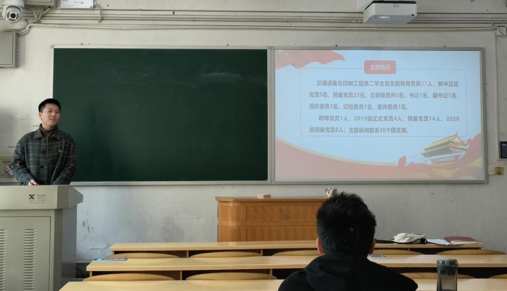 2月27日下午16:00,交通设备与控制工程第二学生党支部在世纪楼A205教室举行支部2022年度组织生活会暨民主评议党员大会,党委委员刘辉教授、支部全体党员参与会议。支部书记张健老师主持本次大会。