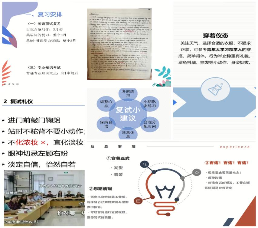 本次经验交流会让正在准备复试中的同学对复试的流程更加明晰,对复习的方向更加明确。祝愿同学们能够心想事成,在复试中能取得理想的成绩。