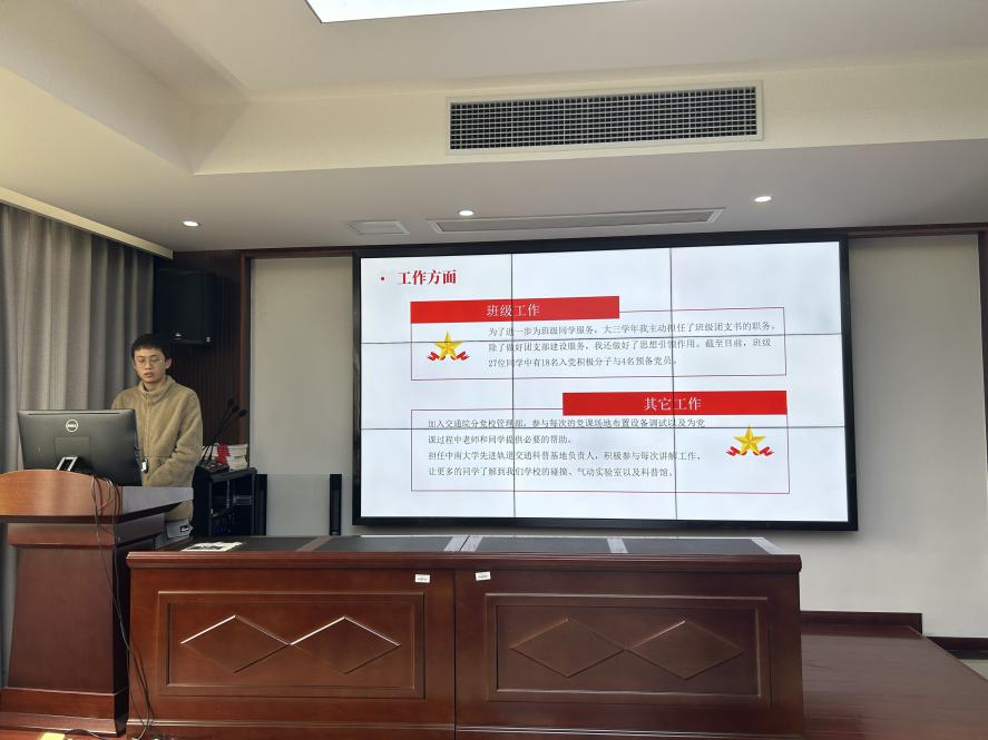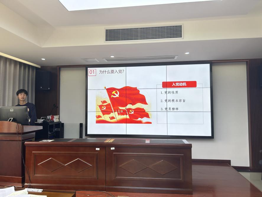会议伊始,李瑞雨同志介绍了汇报的流程及相关事宜。随后,各发展对象候选人依次上台汇报,简单介绍自己进入大学以来在学习、学生工作、志愿服务等方面的情况,详细梳理了在入党道路上的思想转变历程,着重叙述了对党的认识和入党动机,同时反思了自身目前存在的不足并提出改进措施,表明了向党组织靠拢的决心。