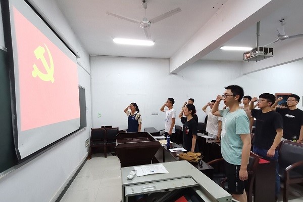 经讨论,大会成员一致认为,蔡成奕、张月鹿等十一名同志自提交入党申请以来,认真学习党的基本知识,及时向党组织汇报思想,并不断提高自己的思想觉悟。他们也能够自觉用党员的标准要求自己,对待工作认真负责,面对学习积极进取、成绩突出,受到同志们的广泛好评。在无记名投票后,十一位发展对象全部成功通过了审核。最后,支部大会宣布接收本期发展对象为预备党员的决议,并由邹琳惠同志带领全体与会党员在党旗下进行了庄严的宣誓。
