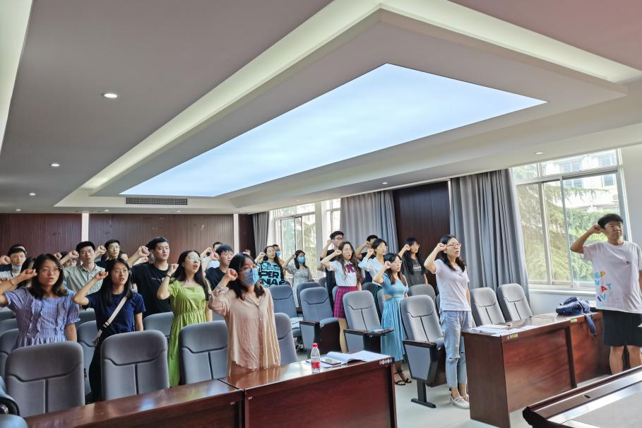 最后,支部宣传委员刘家忱同志带领新发展的党员进行了入党宣誓,原支部党员重温入党誓词。战映辰同志对新接收的预备党员表示祝贺,并希望他们在今后的生活、学习中,能以更加严格的标准要求自己,牢记组织的教导,把入党的荣誉感真真切切落实为为人民服务的责任感,用实际行动践行党旗下的誓言。