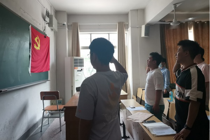 随后,江禄民同志带领支部全体党员重温入党誓词,同志们面对党旗庄严宣誓,表达了准备为共产主义奋斗终身的信念与决心。最后,支部书记张健同志进行总结。他强调,身为党员要牢记入党的时刻,时刻铭记着党员的身份,积极发挥党员的先锋模范作用。