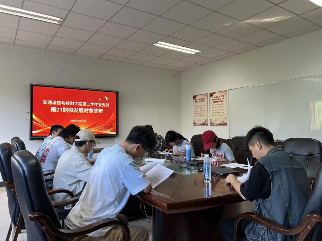 为进一步规范发展党员质量,切实把好党员队伍的“入口关”和“质量关”,2025年10月29日下午,交通设备与控制工程第二学生党支部在交通楼322召开第21期拟发展对象推荐答辩会。会议由郑苑同志主持,支部全体党员同志和14位拟发展对象参会。