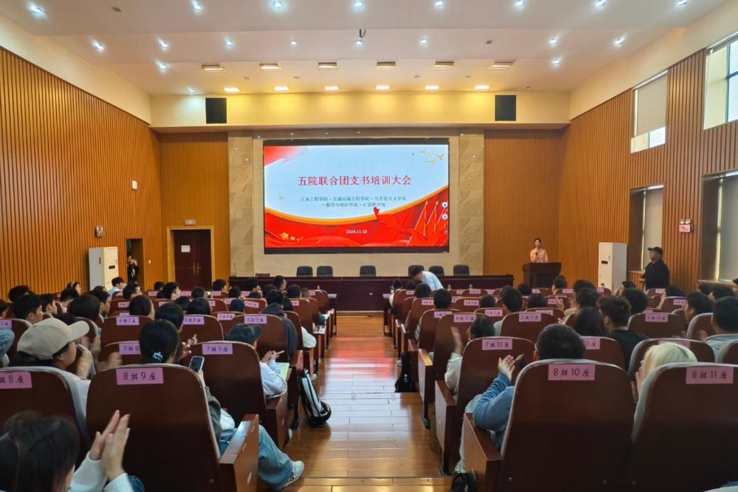 、土木工程学院、数学与统计学院、计算机学院、马克思主义学院联合举办的“团日共创谱新篇,携手奋进正当时”五院联合团支书培训会于新校区数理楼134报告厅召开。校团委组织部李智辉老师,土木工程学院杨雨仑老师及各学院本科全体23、24级团支书参与本次会议。