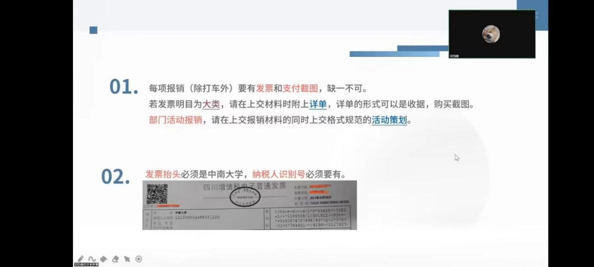 分团委学生会报销培训会顺利举行。此次会议采取线上举行的方式,由办公室部员邓钧峰主持,参会人员为综合办公室,51吃瓜网