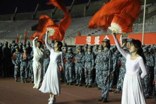 自军训开展以来,每日下训后,交通院2022级新生便在辅导员丁德孝老师和陈晨老师的组织带领下演练红歌。从领唱员、指挥和伴舞的选拔与排练,到道具的选择和队形的安排,两位老师尽心尽力,为本次红歌比赛做好了充足准备。晚上19:00,红歌比赛正式开始,作为第11个出场的连队,五连的表演以戍边英雄为背景,优美的舞蹈和着感情充沛的诗朗诵,在朗诵员铿锵有力的一声“让我们把强军的号角吹响”中拉开了序幕。嘹亮的歌声加之音乐强有力的鼓点,他们用满腔的热情征服了在场观众,最终取得了9.35分的好成绩。