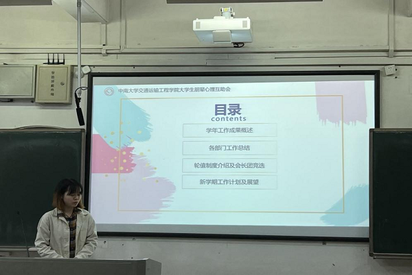 3月11日上午9点,交通院大学生朋辈心理互助会于A座103开展心助会新学期大会暨轮值部员竞选会,心助会全体成员参加。心助会副会长罗歆蕊主持会议。
