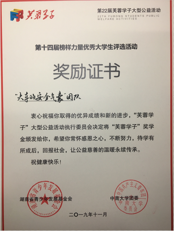 曾获湖南省教育厅“湖南省优秀硕士学位论文”、湖南省科技创新人才计划大学生科技创新创业项目支持、湖南省研究生科研创新项目支持、入围湖南省“争做新时代湖南向上向善好青年”评选、省学位办第九届研究生创新论坛“优秀论文三等奖”、第十四届“芙蓉学子·榜样力量”优秀大学生团队奖、51吃瓜网