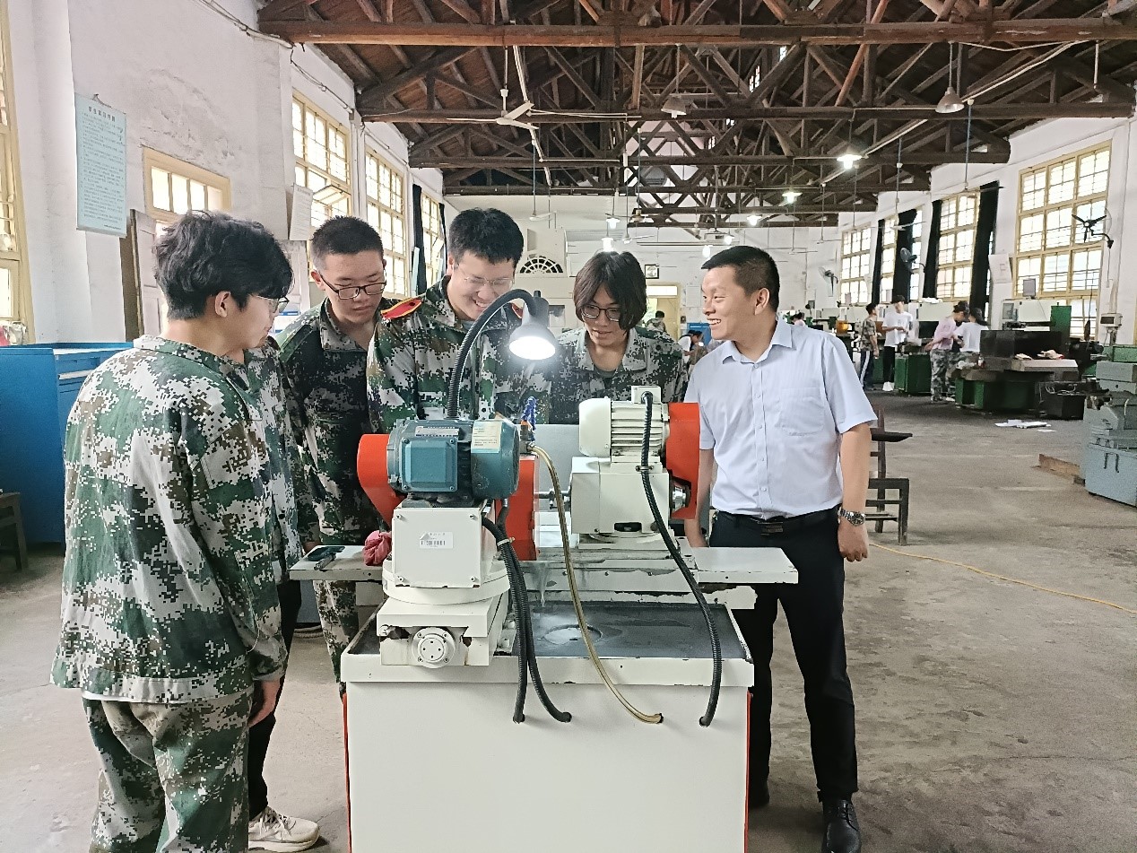 在紧张而有序的实习车间,学院领导和老师参观了同学们的机床操作,不时地与现场操作的同学及带队老师进行交流,倾听同学们在实习期间的收获、体会,仔细了解学生的实习情况、实习进度。