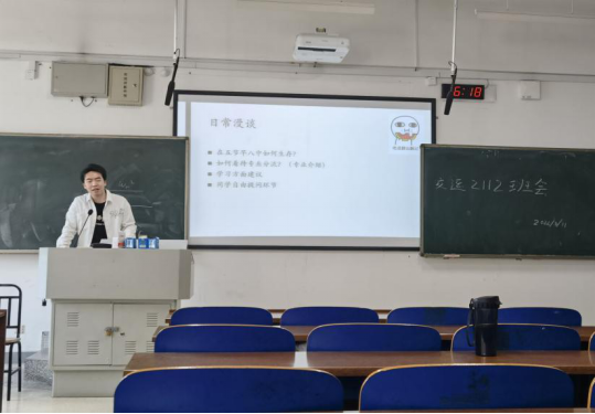 班会最后,交运2112班的党员副班导郭冬阳就同学们对本学期的生活规划提出了建议。他向同学们分享了自己如何平衡学习生活与日常生活的经验,后又以自己的见解向同学们简单地介绍了大类分流后的四个专业,同时,也给出了一些学习方面的建议,鼓励同学们不要因上一学期的成绩不理想就放弃上进,只要有心人人都能成功。