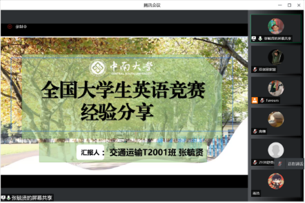 会议伊始,张毓贤、张普阳、杨嘉钰分别介绍了全国大学生英语竞赛、“互联网+”、交通科技大赛这三个同学们比较感兴趣的竞赛。其中,张普阳向同学们分析了创新创业项目与科研项目的不同之处和相似之处,让同学们更加深入地了解了两项竞赛的内涵深度。而杨嘉钰则详细阐述了在交科赛中,准备并完善一个优秀项目的方法和步骤,为同学们在竞赛的道路上指明方向和思路。