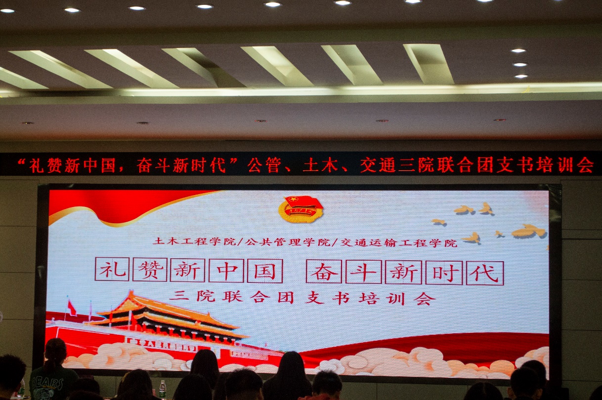 分团委组织部,土木工程学院公共管理学院联合组织召开了“礼赞新中国,奋斗新时代”三院联合团支部培训大会。公共管理学院团委书记闵迪,公共管理学院团委副书记王芳芳老师,校团委管理中心党佳悦、傅镜恩出席大会并担任此次大赛评委。本次大会由公共管理学院组织部部长谢青青主持。
