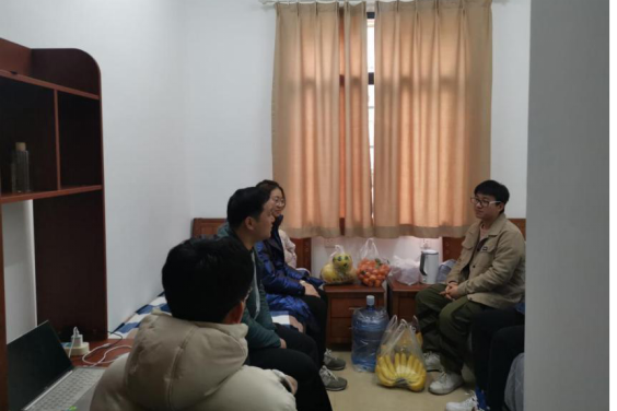 宋晓东副书记与每位留校学生亲切交流,亲切问候了同学们的日常生活情况、学习情况和家里的疫情防控形势,表达了学院对于寒假留校学生的关心。此外,他还叮嘱同学们注意安全、加强锻炼,并经常与家人联系,每天向家人、导师、辅导员报声平安,同时也提醒大家在留校期间要严格遵守学校疫情防控要求,提高防范意识,做好科学防护,积极配合学校有关规定,合理安排好留校期间的学习和生活计划,为新学期开学提前做好准备,有困难要随时与辅导员和宿舍管理员联系。