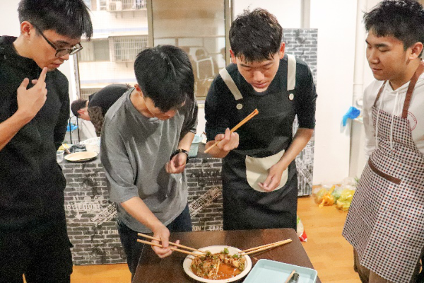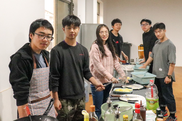 学生为主,从上午到下午分为6组,每组顾客在一名厨师的带领下利用厨房提供的食材进行烹饪。其中,许多同学都是第一次自己动手做饭,洗菜、切菜、翻炒、调味,每一个简单的细节都给这些厨房新手带来挑战和快乐。室外,秋风携来阵阵凉意,厨房里,人间烟火,其乐融融,热气氤氲掩不住或疑惑或惊喜的说笑与呢喃。紧张又兴奋,疲惫又热忱,团队成员们忙碌着,观察着,也思考着。