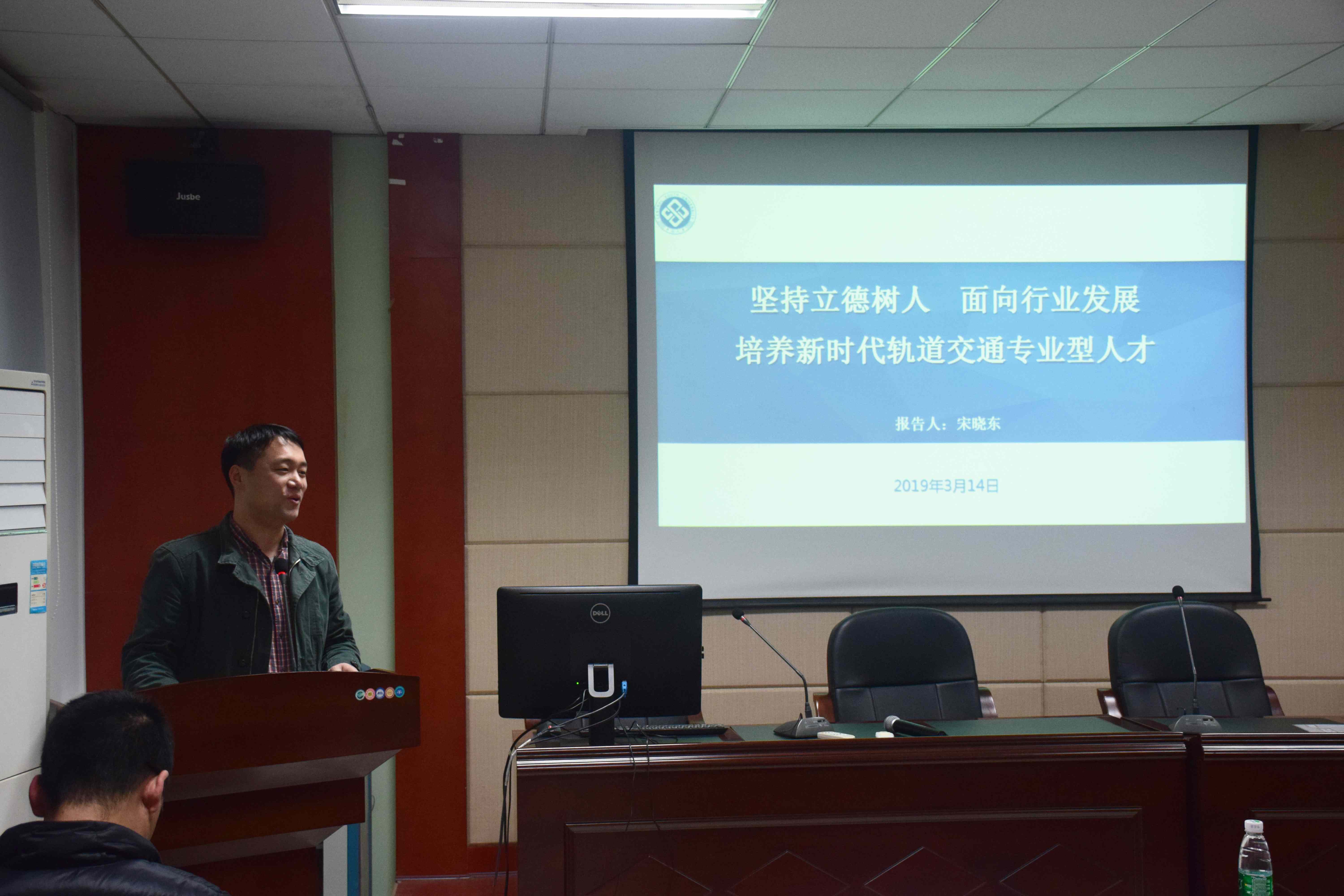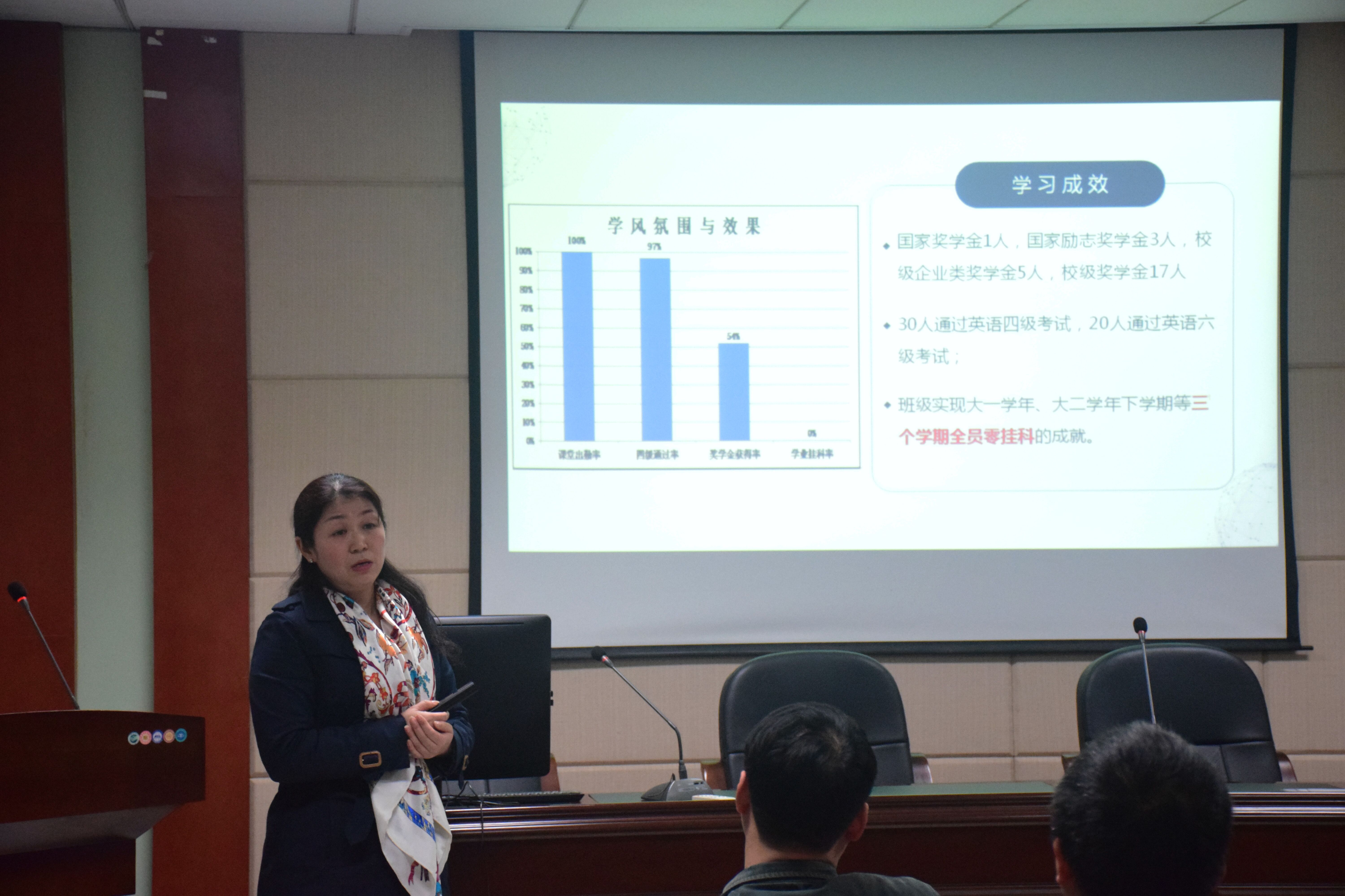 首先,进入本次会议的第一项议程,由学院党支部宋晓东副书记作学院2018年学生工作报告。宋书记从“以理想信念为核心,深入开展思想政治教育”、“以深化平安建设为重点,切实维护学院安全稳定”、“以心理健康教育为中心,确保心理健康工作落到实处”等十个方面详细介绍了学生的基本情况。在学院党委的领导和全院教师的大力支持下,在同学们的不懈努力中,过去一年,学院在理想信念教育、学风建设、网络文化育人、创新创业教育和国防教育等方面均取得亮眼的成绩。同时,宋书记还强调了班导师的工作要求和定位,并对2019年度的班导师工作提出了新的期许。