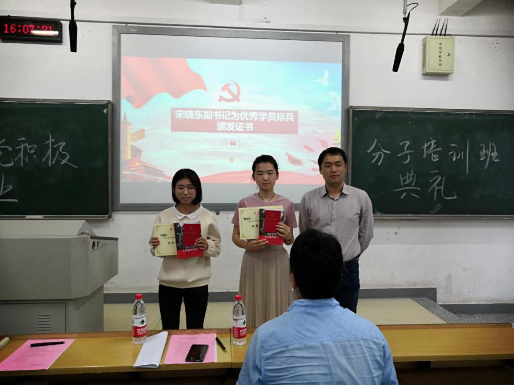 随即进行典礼第二项,由本期培训班班导师高辉老师宣读本期培训班的表彰决定,由宋晓东副书记、张佳琪老师为优秀学员标兵和优秀学员颁发获奖证书以及奖品。