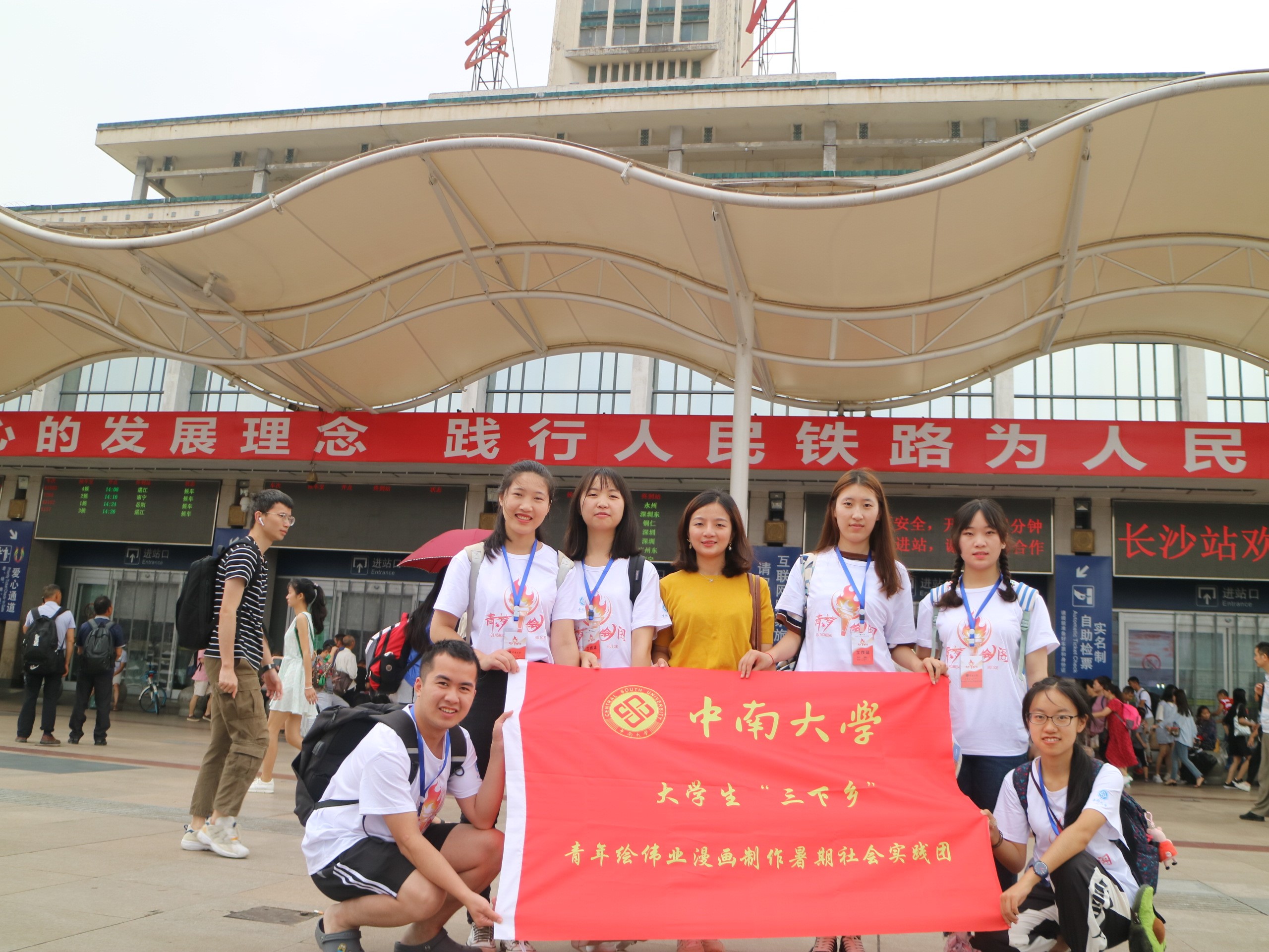 青年绘伟业实践团从长沙火车站出发,奔赴张家界市慈利县进行实践考察与伟业故事挖掘。
