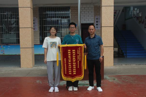 7月20日上午8:30,家长与金钩小学一同向支教团授予锦旗,对支教团的认真工作和辛勤付出表示感谢。