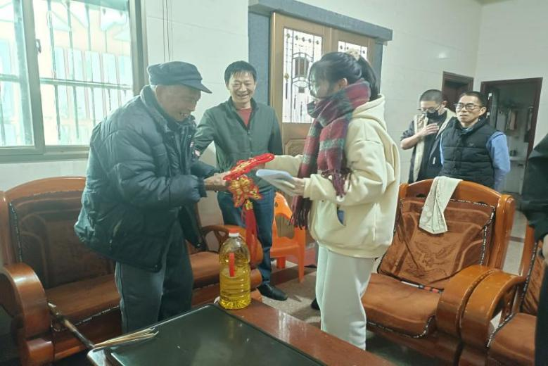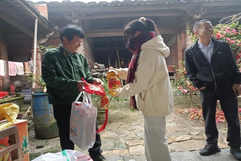 、湘雅医学院、自动化学院3个院系的13名本科生(9名大陆同学、4名港澳台同学)组成的“寻根溯源-同心筑梦”寒假社会实践团联合共青团泉州市洛江区委员会,前往前坂村开展春节慰问活动,深入慰问乡里4户老党员、困难老人、困难学生,并为其送去来自港澳台同学的新年祝福信件及食用油、年货等慰问品。