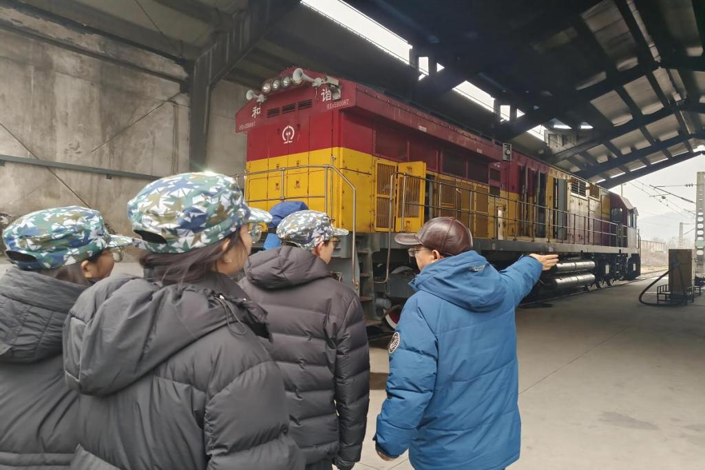 交通院赴湖南省株洲市交通调研寒假社会实践团抵达株洲机务段开展参观实践活动,学习铁路线路的运输任务以及机车质量的日常维护工作。
