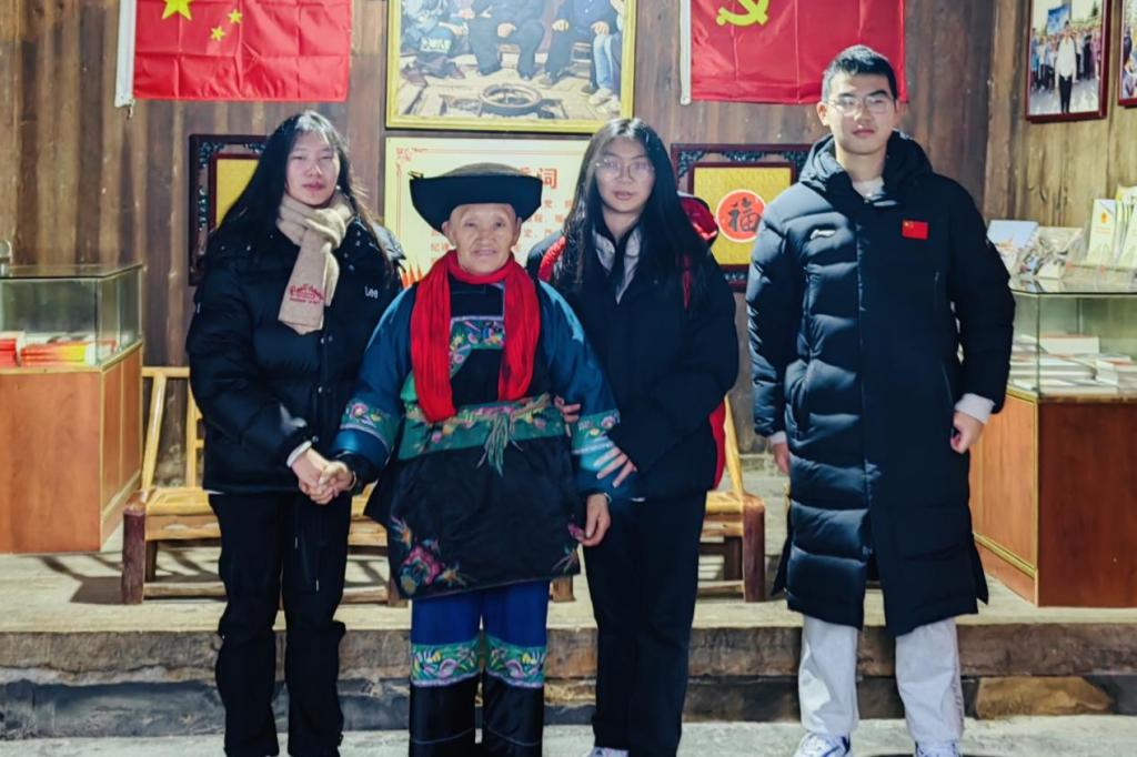 第三小组深度挖掘十八洞村的人文资源。该组成员前往梨子寨拜访“大姐”——石拔三(石大姐家是习近平总书记到十八洞村走访的第一户贫困户),走进大姐的矮寨,在屋内木墙上看到了大姐去到北京的留影。在与她的交谈之中,石大姐时常流露出对习近平总书记的思念:“十年来,我几乎每年都去一次北京。”昏暗的灯光下,小寨的火炉旁,她欣慰的言语,自豪的笑容,映照出十八洞村从无到有,从过去到现在,从脱贫到振兴的乡村巨变史。