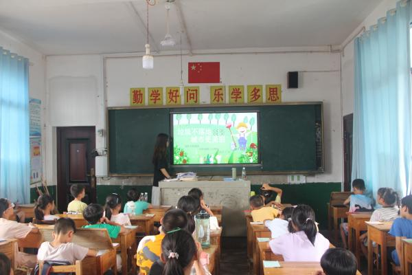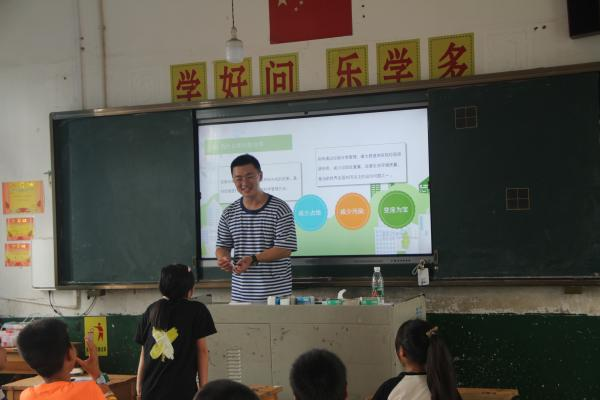 支教团通过主题班会的形式教导学生关于节能节水、垃圾分类和低碳环保等方面的知识。