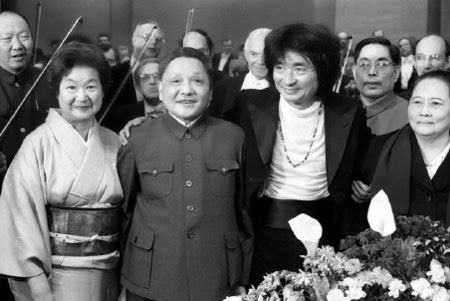 (1979年,小泽征尔率领波士顿交响乐团来北京演出,获邓小平接见。小泽征尔虽是日本人,但出生于渖阳,主要岁月都在欧洲度过)