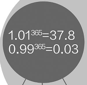 失之毫厘,差之千里。洛仑兹将仅仅相差0.0001的两个初始条件输入一个数学方程,计算得出的两条曲线不久就分道扬镳,相差很远。这是数据的蝴蝶效应,当我们计算0.99的365次方和1.01的365次方时,我们会发现它们相差甚远,而它们的原始数据只相差0.01。