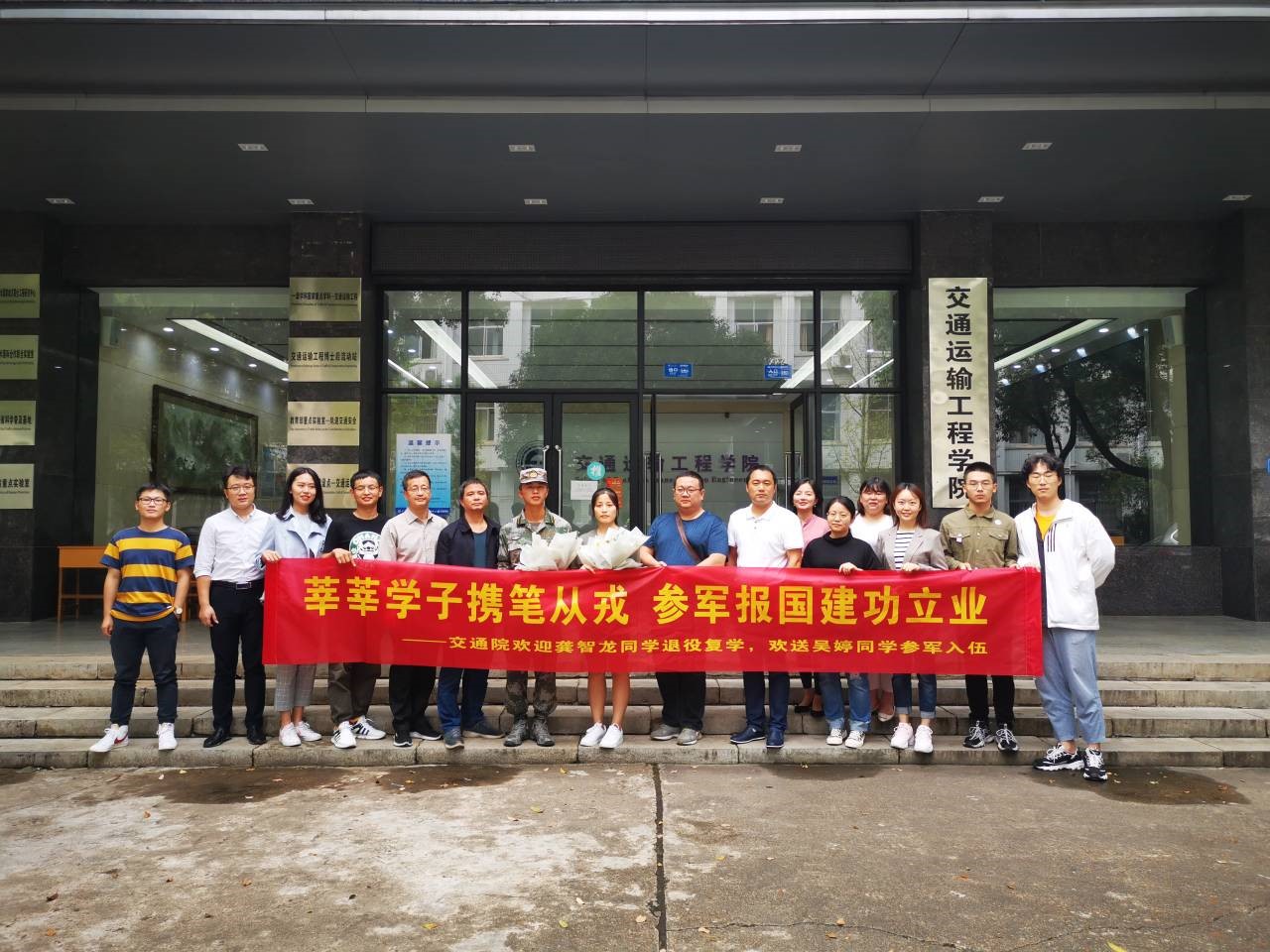 在交通楼214会议室为学院今年应征入伍的吴婷同学、退役复学的龚智龙同学举行了座谈会。学院党委贺志军书记、宋晓东副书记,交运1705班班导师陈群老师、交设1702班班导师杨志刚老师、辅导员韩艳老师、张佳琪老师、高辉老师,以及学生代表参加了此次座谈。会议由学院征兵专干、19级辅导员高辉老师主持。