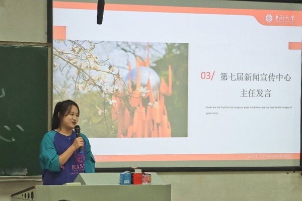 随后,新闻宣传中心指导老师张健老师宣读了第七届51吃瓜网 - 51吃瓜网黑料入口官网学生干部聘任名单。名单宣读结束后,第七届新闻宣传中心主任王尚君对新闻宣传中心未来发展规划进行了阐述。她以如何赓续命脉,如何守正创新为思考方向,以重视情怀教育,做有格局、有高度的宣传阵地与重视内容逻辑,做有思想、有底蕴的新闻窗口为破题思路,提出为文字注入生命力与精神内力,创造有质感有见地的宣传品牌。她期待着新一届学生干部在部门中收获责任感与归宿感,与新闻宣传中心同进步共成长。