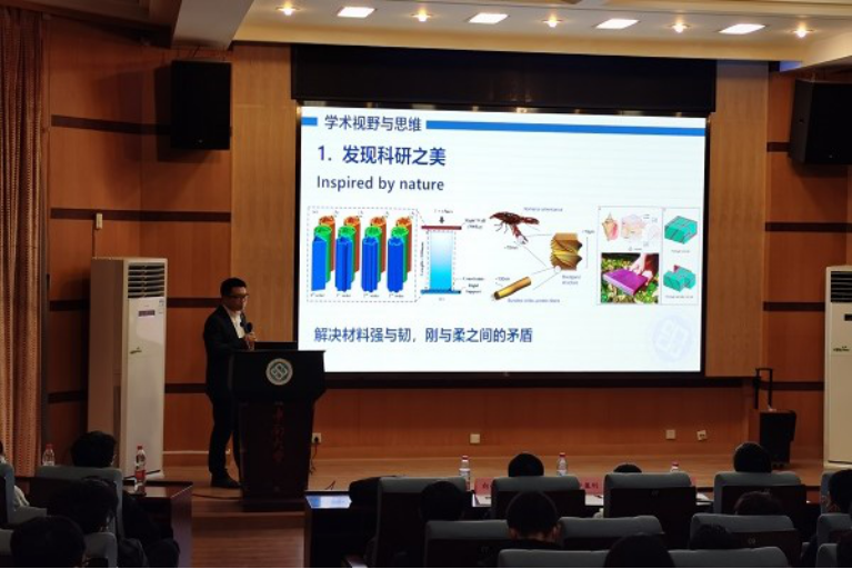 随后,由学院各系所老师上台分享学术经验。汪馗老师围绕“学术视野与思维”这个话题,结合自己多年的求学、科研及教学经历,从发现科研之美、创造科研之美、追求科研之美、批判科研之美四个方面鼓励同学们多从生活中发现科研的乐趣,综合运用各种方式获取有用的知识,善于交流与思考,敢于挑战权威。李双琳老师以“叩学术研究之门,享科学智慧荣光”为主题,从需求驱动型及理论方法型两个方面,以当前国家社会的大事小事的发展为例,介绍了如何有效地开展学术研究,并深入浅出地讲解了科研过程中需要注意的问题。