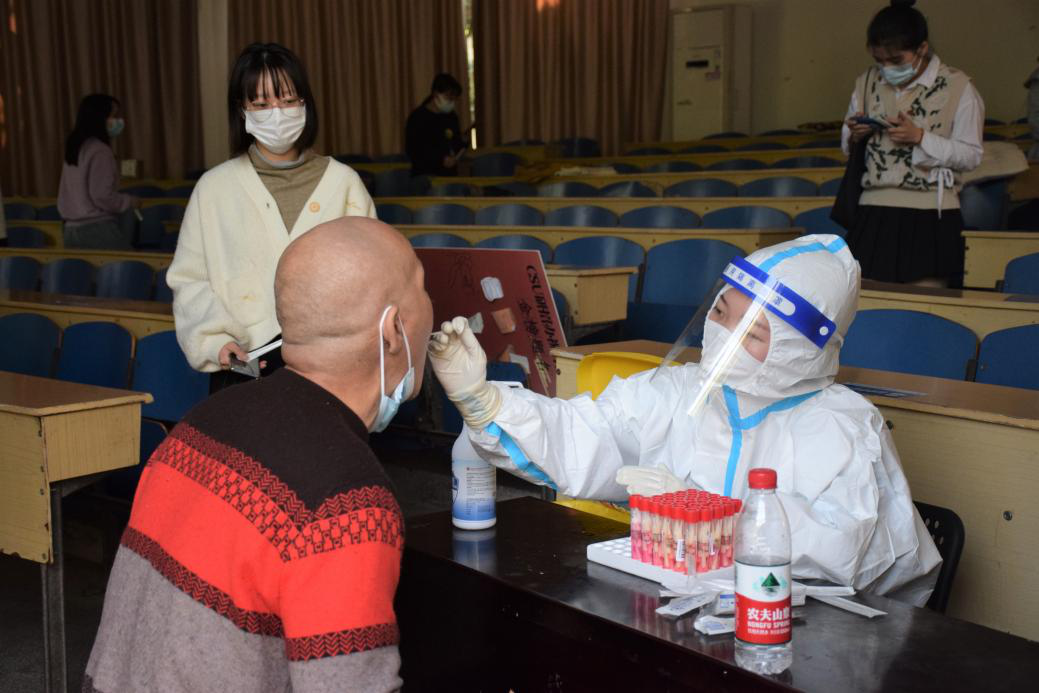 惟其艰难,更显勇毅!截至目前,学院已有30余名教职工参加了防疫志愿服务工作。每天在志愿者工作群里,仍有源源不断的教职工主动请缨。征集志愿者的通知一出,即使是在深夜11点,10分钟队伍就能集结完毕,真正的“一岗难求”。他们当中,既有刚刚参加工作的青年教师,也有即将退休的老教授,在抗“疫”一线,他们都是勇毅的战士。从“三尺讲台”走上抗“疫”战场,他们身穿白色防护服、戴着厚厚的口罩,参加核酸检测筛查点位值守,一站就是6个小时。“很高兴来参加志愿者工作,比在实验室写论文更有成就感”,新进青年教师王家斌自豪地说。实验中心陈峰老师已经从上午的志愿岗下班了,下午看到检测时间延长又跑过来帮忙,但下午班的老师们谁都不肯离开岗位,一个劲地说:“再给我们配一些试剂”。这样的动人瞬间不胜枚举!教职工志愿者在抗疫一线用实际行动诠释人民教师的责任和担当,为全体师生筑起一道疫情防控的严密防线。