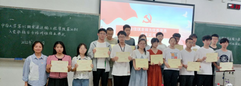 第20期入党积极分子培训班结业典礼在新校区B座112室顺利举行。交通院党委副书记宋晓东老师,交通院组织干事张佳琪老师,入党积极分子培训班班导师石晓琪老师、王羽珊老师参加了此次结业典礼,典礼由石晓琪老师主持。