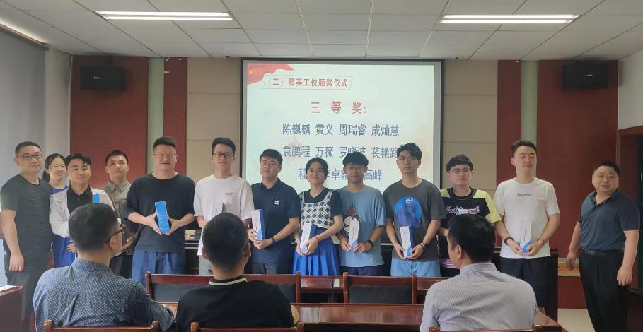 会议伊始,进行“最美工位”的颁奖环节。首先陈峰同志和杜伦平同志颁发三等奖奖品,随后汪馗同志颁发二等奖奖品,最后宋晓东同志为一等奖获得者颁奖。“最美工位”评选活动不仅发动了各位同志对工位进行清洁,保证了学习科研环境的整洁,更在一定程度上提高了科研效率,起到了一举多得的作用。